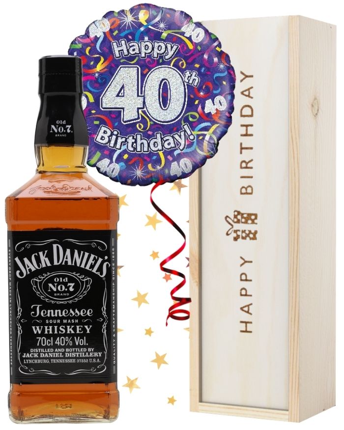 Perfect for any Tennessee Whiskey fans turning 40, why not mark someone’s milestone birthday with this gorgeous gift set. Beautifully presented in one of our ‘Happy Birthday’ wooden gift boxes, send someone a single bottle of Jack Daniels Old No.7 Tennessee Whiskey to celebrate with. Plus, this gift also includes a fully-inflated 40th birthday balloon that’ll float out and surprise your recipient. It’s the perfect gift! Complete this gift with a personalised message and have it delivered straight to their door. Next day or selected date delivery is available, meaning there’s no reason not to send this gift!