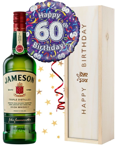 A perfect drink to toast a 60th Birthday. No matter who it’s for, let them raise a glass of traditional Jameson Irish Whiskey for the occasion. Delivered in one of our ‘Happy Birthday’ printed boxes, there’s no more unique and thoughtful gift than this one. Plus, surprise them with a fully-inflated 60th Birthday balloon that pops out upon opening the package. Send extended birthday wishes with a personal message, printed onto a keepsake, plastic card. So they can keep the memory for years to come. Have this wonderful gift delivered the next day or on a date of your choice.
