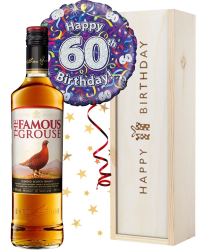 Packaged in one of our ‘Happy Birthday’ printed boxes, help make a 60th Birthday special with this simple yet unique gift set. Treat someone to a single bottle of The Famous Grouse Scotch Whisky and a joyous, fully-inflated 60th Birthday balloon to celebrate their milestone. Let them toast to memories and the future with a smooth glass of this popular and tasteful Whisky no matter where they are in the UK. Completed with a personal message, have this set delivered the next day or on a date of your choice. So even if you can’t be there, you can still be part of the celebrations.