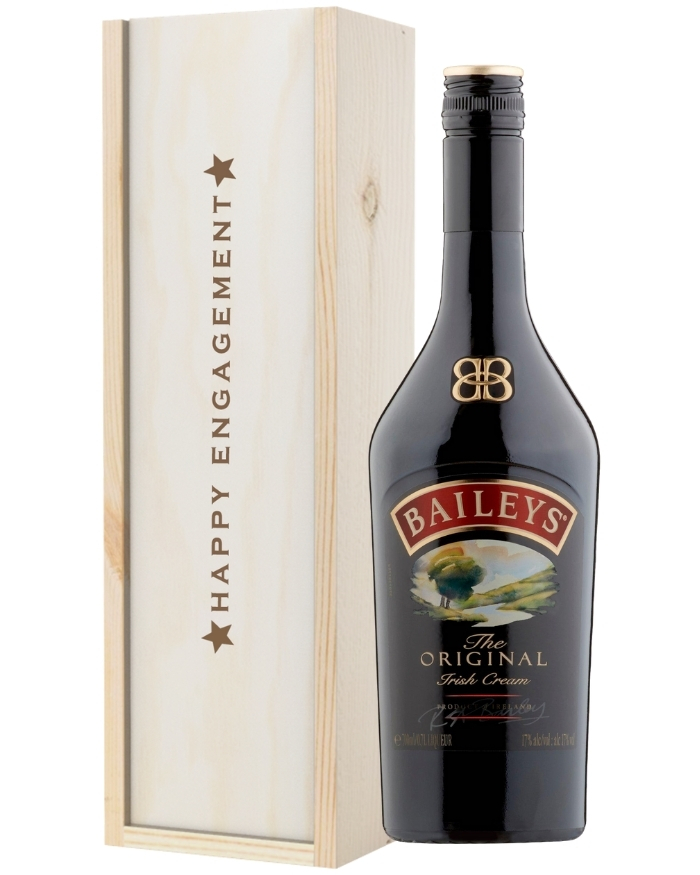 If you’re looking for a unique and delicious engagement gift - this is it. Let a couple start an engagement off right by sending them this Baileys engagement gift. Presented in one of our wooden ‘Happy Engagement’ gift boxes, this gift contains a single bottle of Baileys Original Irish Cream for the happy couple to indulge in. Plus, write your own message to let them know how excited you are for their next chapter together. No matter where they live, have this gift delivered straight to their door either the next day or on a date of your choice. There’s no engagement gift more unique and tasteful than this one.
