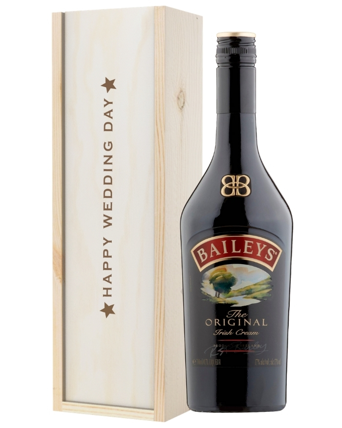 This gift is nothing but unique, elegant and totally delicious. Gift a newly married couple this gift set containing a single bottle of morish Baileys Original Irish Cream to enjoy together. Make them grateful to have people like you in their lives and have it delivered straight to their door as a surprise that’s full of flavour. Presented in one of our wooden gift boxes with ‘Happy Wedding Day’ printed on the lid, this can be delivered either the next day or on a selected date. You can also add a personalised message to let them know how happy you are for them. Whether sent before or after the wedding, this is a perfect gift for any happy couple.