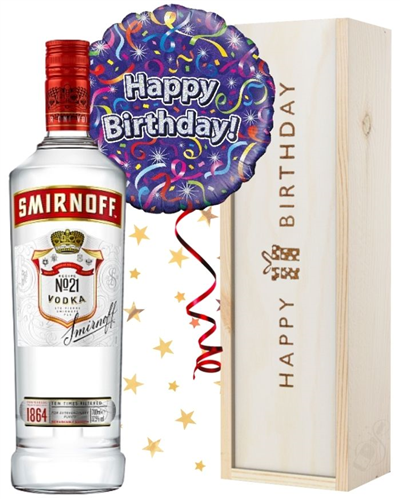 Upgrade any party or birthday with this fun and joyous birthday Vodka, and balloon gift hamper. Delivered the next day or on a selected date, give someone ultimate celebrations with this gift containing a single bottle of the bestselling Smirnoff Red Label Vodka. Perfect for birthday cocktails, this Vodka will serve well in any cocktail or pair perfectly with any mixer. This gift also includes a fully-inflated helium ‘Happy Birthday’ balloon to pop out upon opening to emphasise the birthday wishes. So no matter where they are or who it’s for, you can add a personalised message and deliver the birthday party straight to them.