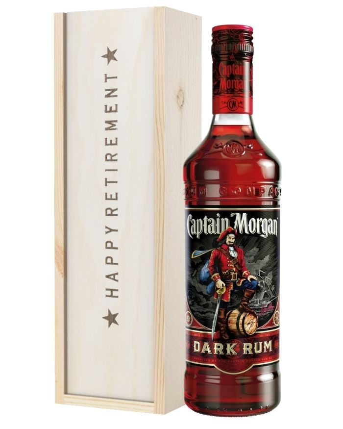A one-of-a-kind way to wish anyone in your life a happy retirement. This exclusively designed Dark Rum Retirement Gift Box makes an amazing gift for any rum-lover in your life, whether it’s your mom, your uncle, or even just a friend. Easy to personalise with a message from you if desired, this high-quality gift set is delivered in a solid and sturdy wooden gift box and lined with wood wool to ensure secure delivery to any location. Boasting a bold bottle of Captain Morgan Dark Rum and the words ‘Happy Retirement’ on top of the gift box itself, every inch of this gift option is made to fully satisfy any recipient.