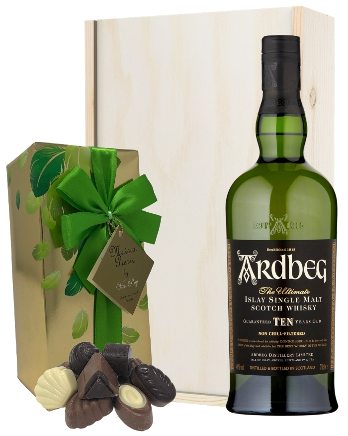 Ardbeg 10 Year Old and Chocolates Gift Set in Wooden Box