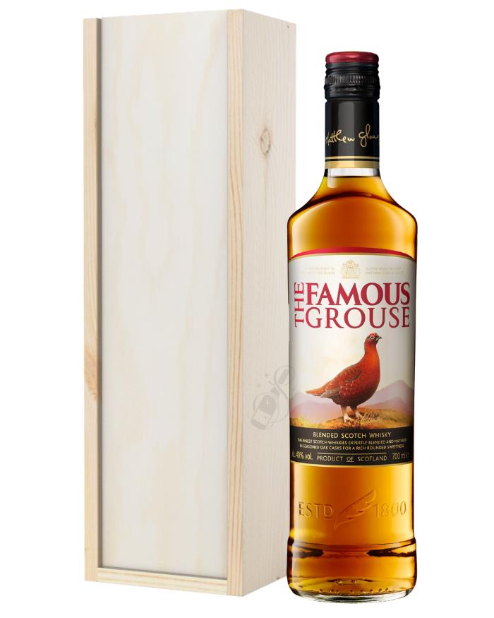 A wonderful gift to send to anyone with a love for the deep flavors that only whisky can offer, this truly remarkable Famous Grouse Blended Scotch Whiskey Gift Box is sure to truly satisfy any recipient from start to finish. Presented in a durable wooden box and lined with wool for true protection during delivery, this gift box is designed to arrive securely for the enjoyment of whoever is lucky enough to receive it. A gift set that contains a single bottle of The Famous Grouse Blended Scotch Whisky within it, this box makes an extraordinary gift for a wide variety of different occasions from a birthday to a retirement and beyond.