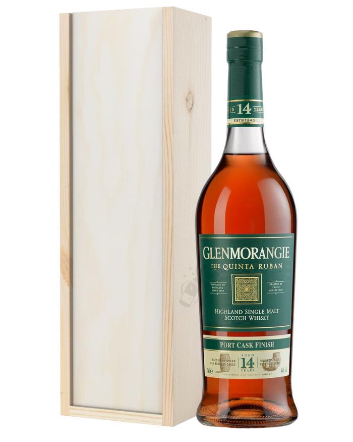 Offering absolutely smooth and delicious flavours from beginning to end; the bold and beautiful bottle of Glenmorangie Quinta Ruban 14-Year-Old Highland Single Malt Scotch Whisky included within this gift box is matured in a bourbon cask and then extra-matured in a ruby port cask to provide a fully smooth taste unlike any other. Presented in a chic and versatile wooden box lined with wood wool to ensure secure delivery to any location, this Glenmorangie Quinta Ruban 14-Year-Old Highland Single Malt Scotch Whisky Gift Box makes the perfect addition to any wedding reception, retirement party or baby shower that comes up, any time of the year.