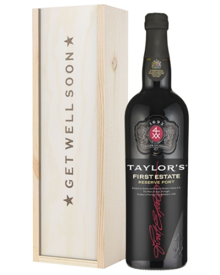 Just the gift set any port drinker would be thrilled to receive; no other present option on the market will have them striving to get better the way this one does. Complete with a single bottle of Taylor’s First Estate Reserve Port and presented in a solid wooden gift box lined with wood wool, this chic and high-quality gift set also includes the words ‘Get Well Soon’ stamped beautifully on top. Simple to personalise with a message from you as well, this Port Get Well Soon Gift Box is a great get well soon gift for sending to anyone from a member of your staff to your favorite sibling.