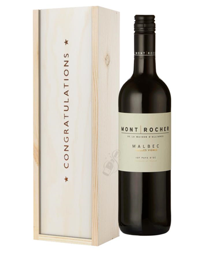 French Malbec Red Wine Congratulations Gift In Wooden Box