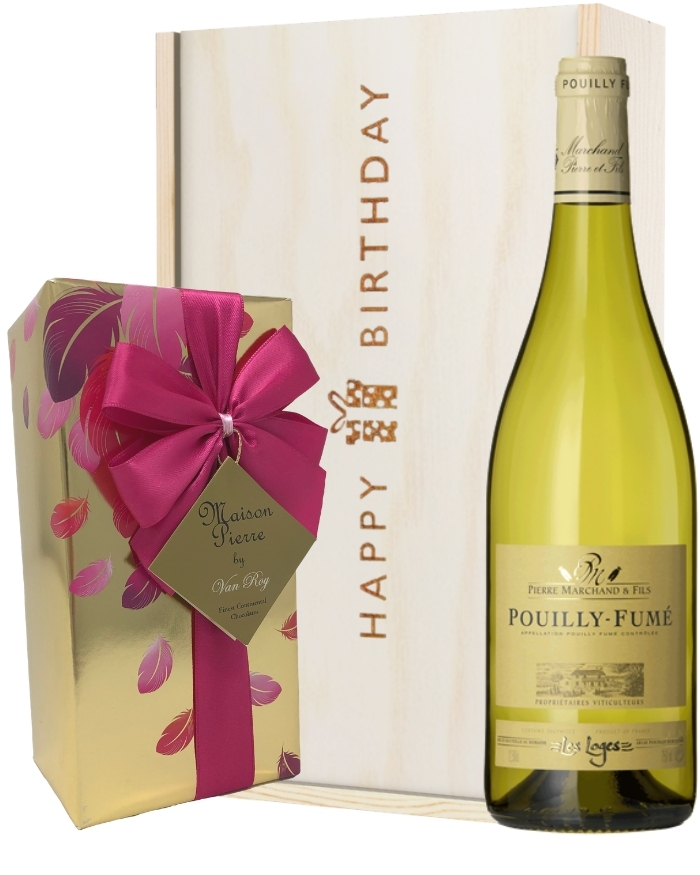 French Pouilly Fume White Wine and Chocolate Birthday Gift Box