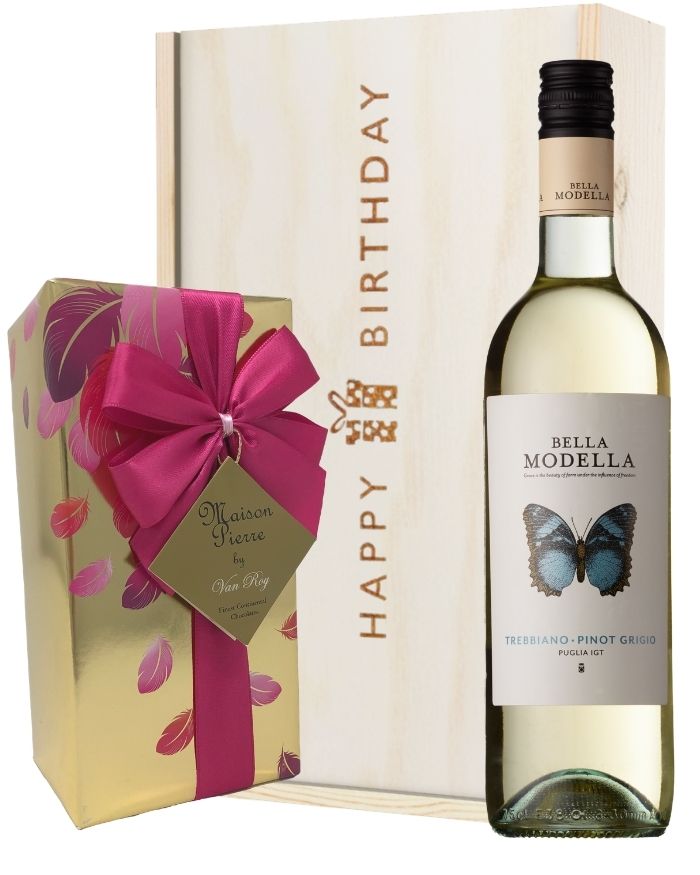Italian Pinot Grigio Wine and Chocolate Birthday Gift Box
