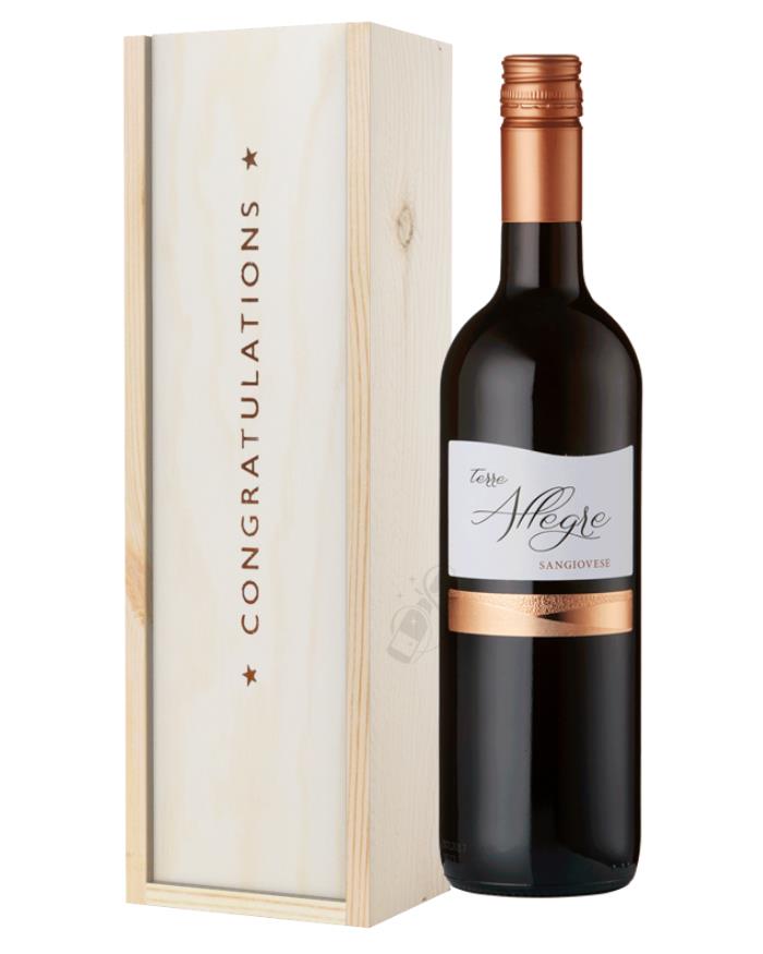 Italian Sangiovese Red Wine Congratulations Gift In Wooden Box