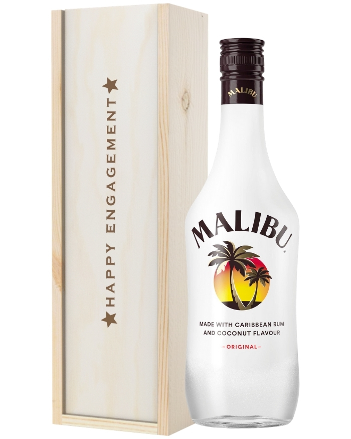 Kick off the engagement party by sending this fun Malibu gift straight to the newly engaged couple’s doorstep. Perfect for cocktails and mixers, treat the happy couple to a single bottle of Malibu Coconut Flavoured Caribbean Rum to make them feel like they’re celebrating abroad. Beautifully presented, this gift is packaged in one of our wooden gift boxes with ‘Happy Engagement’ on the lid to create the perfect gift in both style and taste. You can have this gift delivered either the next day or on a date of your choice. So you don’t have to miss out on celebrating the occasion with them. Don’t forget to add a personal message to let them know who sent such a fantastic gift!