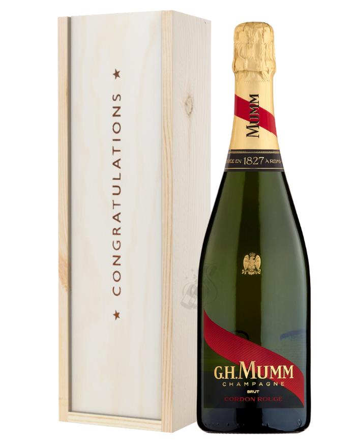 Mumm Cordon Rouge Champagne Congratulations Gift In Wooden Box