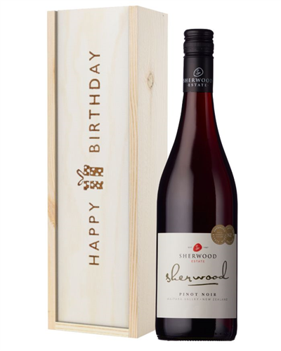 New Zealand Pinot Noir Red Wine Birthday Gift In Wooden Box
