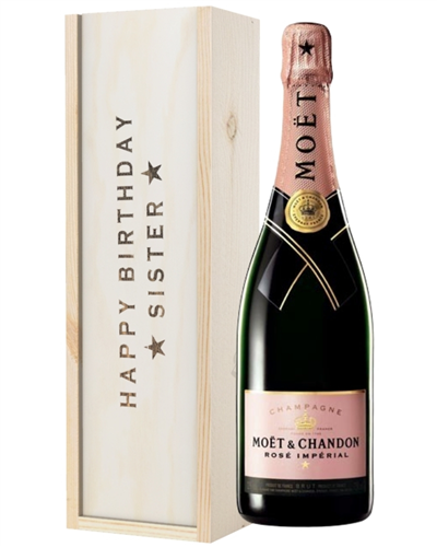 Every birthday needs Champagne so why not treat your sister to this exceptional Rose Champagne gift set? No matter how she’s celebrating, let her pop open a single bottle of Moet & Chandon Rose Champagne. It’s beautifully presented in one of our wooden gift boxes with ‘Happy Birthday Sister’ printed on the lid and is protected with wood wool lining. Plus, extend the birthday wishes with a personalised gift message printed into a stunning gift card. With next day or selected date delivery, you can’t go wrong! So why not give your sister the birthday celebrations she deserves and send her this exceptional gift?