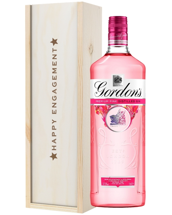 Brighten up the engagement celebrations with this fruity Pink Gin gift. Whether they’re having a party or not, sending them a single bottle of Gordon’s Premium Distilled Pink Gin is sure to help them celebrate in style. Presented in one of our ‘Happy Engagement’ wooden gift boxes, this is the ultimate engagement gift for any Gin-lover or newly-engaged couple. Delivery is available anywhere in the UK, either the next day or on a date of your choice, meaning there’s no reason not to send them this fantastic gift. Plus, add a personalised message to let them know how happy and excited you are for them. What’s not to love?