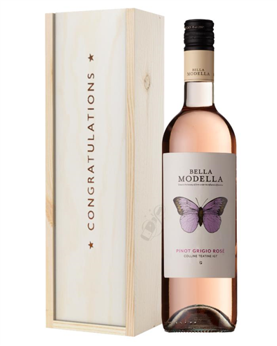 Pinot Grigio Rose Wine Congratulations Gift In Wooden Box