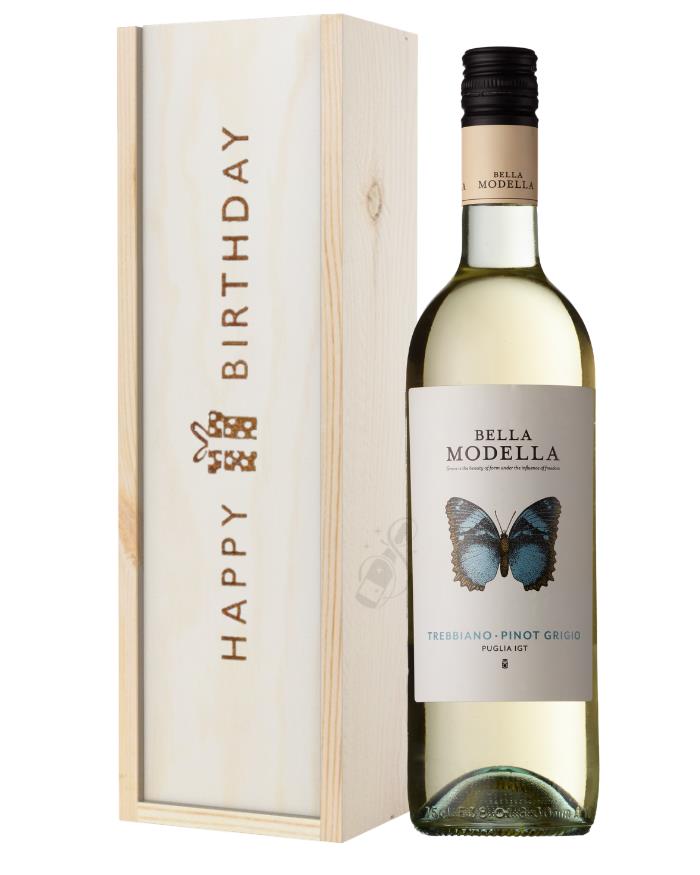 A chic and remarkably handsome happy birthday gift unlike any other; this Pinot Grigio White Wine Birthday Gift Box is designed to satisfy anyone you choose to send it to, from your grandmother, father, uncle, or cousin to your best friend and even beyond. Complete with a single bottle of Pinot Grigio produced in Northern Italy and presented in a solid wooden box with the words ‘Happy Birthday’ stamped perfectly on top, this truly incredible gift box gets the message across and allows you to add a custom, personalised message along with it if desired. A fantastic birthday gift from top to bottom, no other gift option on the market offers the level of class and sophistication that this one does.