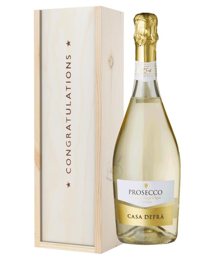 Time to celebrate! Choose from our selection of sparkling and semi-sparkling Prosecco congratulations gifts and we will deliver it for you with your special gift message on the date of your choice, beautifully presented in our 'Congratulations' branded wooden gift box.