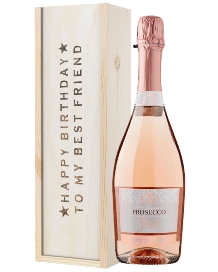 Best friends deserve exceptional gifts for their birthday, and this one is a perfect choice. Let your bestie celebrate their birthday like no other with a single bottle of Italian Prosecco Rose to pop open and enjoy. This Prosecco pairs beautifully with fish and seafood dishes and has delicate Citrus, Rose, and Strawberry notes. It’s also suitable for vegans! Protected with wood wool lining, this gift is presented in one of our wooden gift boxes with ‘Happy Birthday Best Friend’ printed on the lid. Plus, complete this gift with a personalised message and send it anywhere in the UK. Next day or selected date delivery is available, making it the perfect gift to send.
