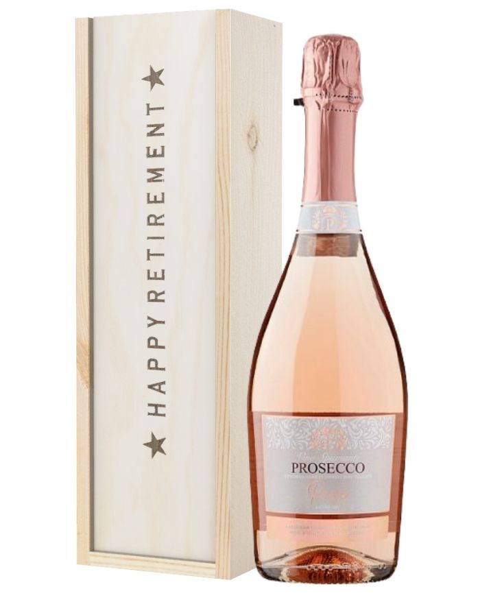 Kick-off someone’s retirement in style with our Prosecco Rose Retirement Gift. Perfect for Prosecco lovers and vegans, treat someone to a single bottle of Italian Prosecco Rose to enjoy. It pairs beautifully with any fish or seafood dishes and includes hints of Citrus, Rose and Strawberry. This gift is presented in one of our wooden gift boxes with ‘Happy Retirement’ printed on the lid and is protected with wood wool. You can personalise this gift with your own message to celebrate the milestone. You can send it anywhere in the UK with next day or selected date delivery. It’s a retirement gift like no other.