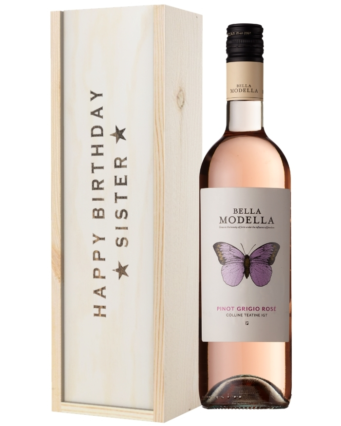 Let your sister celebrate her birthday in the best way possible by sending her this delicious rose wine gift set. Treat her to a single bottle of Italian Bella Modella Rose Wine to enjoy on her special day. It’s beautifully presented in one of our wooden gift boxes with ‘Happy Birthday Sister’ printed on the lid and is protected with wood wool lining. Plus, add your own extra special touch with a personalised message printed onto a small gift card. You can send this gift anywhere in the UK with next day or selected date delivery. It’s the perfect way for any sister to celebrate her birthday, so what are you waiting for?