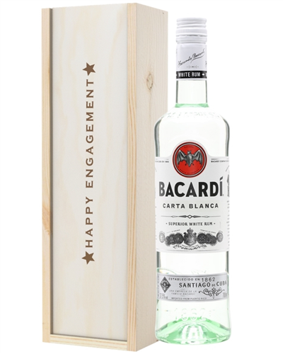 Get the engagement celebrations off to a tropical start with this fantastic white Rum gift set. Whether they’re having a party or not, send the newly engaged couple a single bottle of the popular Bacardi Carta Blanca white Rum to help mark the occasion. Perfect in cocktails and mixers, this gift comes in one of our traditional wooden gift boxes with ‘Happy Engagement’ printed on the lid to create the perfect gift for any happy couple. Plus, add your own message to be printed and included with the gift, so they know it was you who sent it! Have it delivered straight to their door either the next day or on a selected date of your choice.