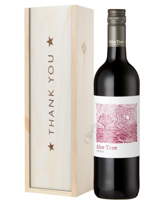 South African Shiraz Red Wine Thank You Gift In Wooden Box