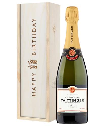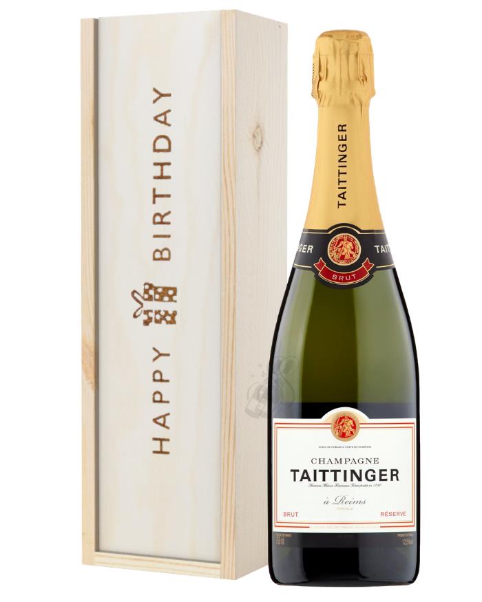 Taittinger Brut Champagne Birthday Gift In Wooden Box