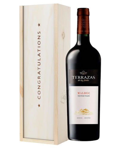 Terrazas Reserva Malbec Red Wine Congratulations Gift In Wooden Box