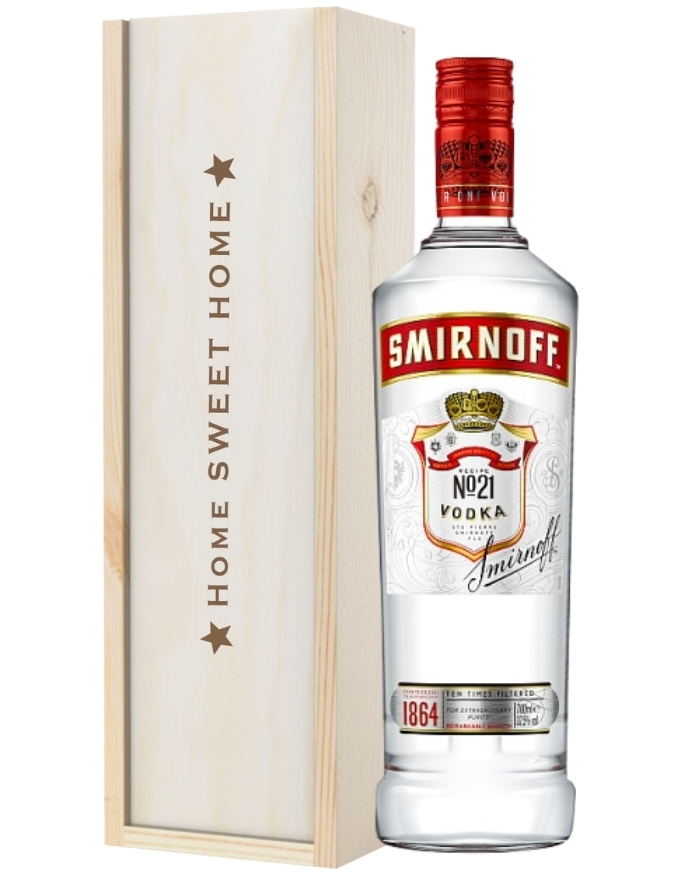 Get the housewarming party started with this fun and classic Vodka gift. Presented in a wooden box with ‘Home Sweet Home’ printed on the lid, treat a new homeowner to a single bottle of Smirnoff Red Label Vodka to enjoy in any way they please. Whether for cocktails or mixers, this will make sure they’re welcomed into their new home in the best way possible. Complete with a personal message, written and printed onto a plastic card, you can have this gift delivered as soon as the next day where possible. Or, select a delivery date and have it arrive the day that they move in! Wherever they’ve moved to, there’s no reason not to send this fantastic gift straight to their new home.