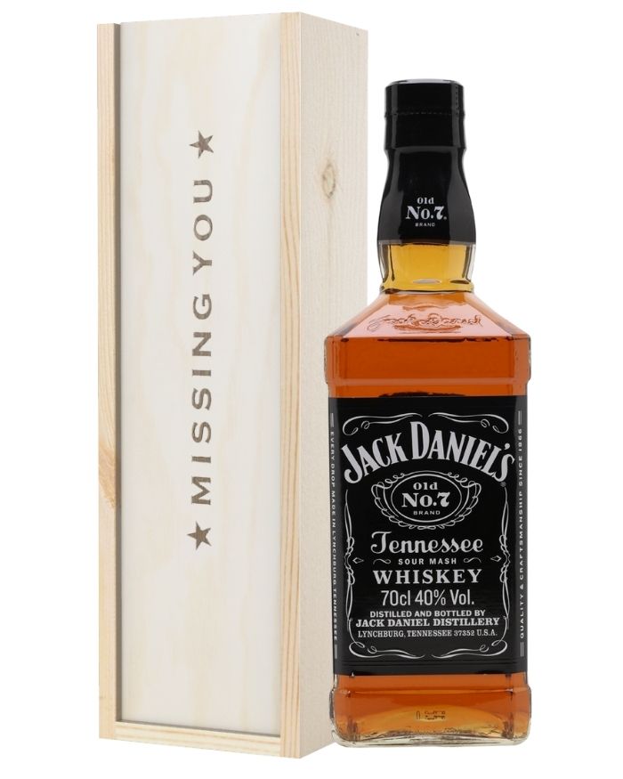As classy, sophisticated, and bold as any gift box can get; from the inside out this Whiskey, Missing You Gift Box offers so much more than any other present you could choose to send from afar. Complete with a single bottle of Jack Daniels Old No. 7 Tennessee Sour Mash Whiskey and easy to personalise with a message from you, this remarkably tasty gift set is designed to assure your recipient feels your love, no matter the reason you’re apart. Delivered in a solid wood wool-lined wooden gift box, this lovely gift set also boasts the words Missing You stamped on top and an amazing flavour from the first glass they pour until the very last.