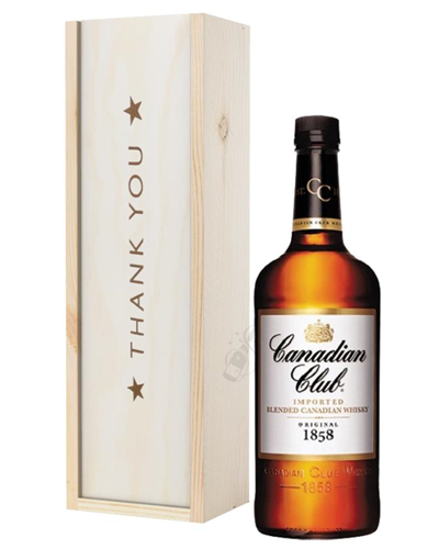 A simple yet sophisticated way to send your warmest thanks to anyone in your life, any time of the year; not only does this gift set come presented in a solid wooden gift box, its also lined with wood wool to ensure secure delivery to any location as well. Complete with a uniquely delicious bottle of Canadian Club Imported Blended Canadian Whisky and designed to thank anyone from a client or co-worker to a friend; when you surprise someone you’re thankful for with this Canadian Club Whisky Thank You Gift Box, they’ll be instantly thankful to you for thinking of them, no matter the reason.
