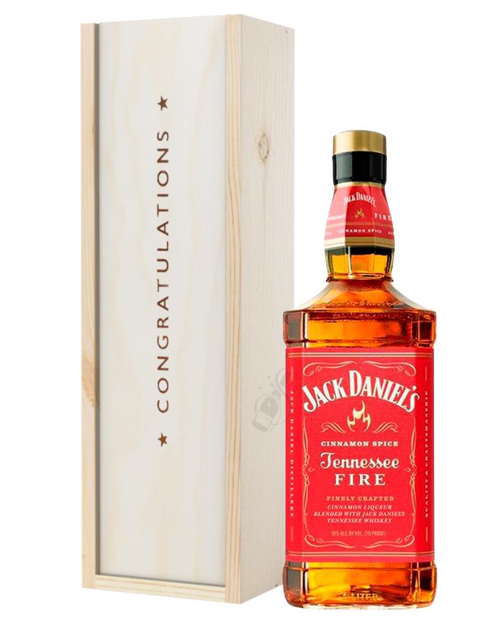 Jack Daniels Fire Whiskey Congratulations Gift In Wooden Box