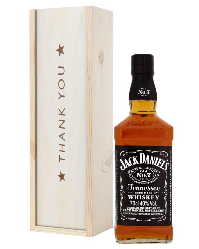 An amazingly smooth and delicious way to send your most sincere thanks to anyone needed; this Jack Daniels Tennessee Whiskey Thank You Gift Box is the ideal present option to send to anyone from a member of your family to co-worker or client from work. Simple to personalise with a message from you and complete with a bottle of Jack Daniels Old No. 7 Tennessee Sour Mash Whiskey within it, from front to back this one-of-a-kind gift box is designed to provide a remarkably unique way to say thank you from the bottom of your heart. Presented in a branded ‘Thank You’ gift box and a wonderful way to please an amazing array of different possible recipients.