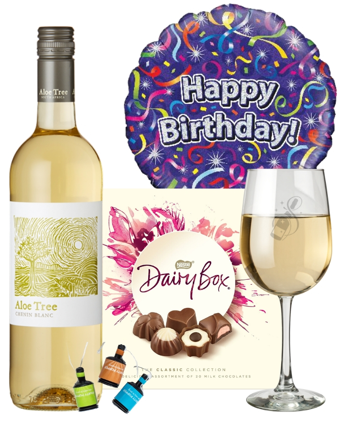 A wonderful birthday gift that will have anyone that receives it offering their true thanks and even begging for more; this amazing set contains a single bottle of Chenin Blanc produced in South Africa, a 200g box of delectable milk chocolates and an inflated ‘Happy Birthday’ balloon that pops out as a surprise when the box is opened upon arrival. A gift box that makes the perfect present for any birthday celebration big or small, this White Wine and Chocolates Birthday Gift Box is sure to catch attention to any party or get-together it’s delivered to. Also great to personalise with a message from you that is included along with the gift box as well.